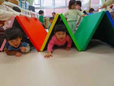 おはよう!と元気に、にこにこ笑顔で登園する子どもたち!寒さに負けず元気いっぱいです。マットで遊んだり、好きな遊びをじっくり遊んだり♪楽しんでいますよ。