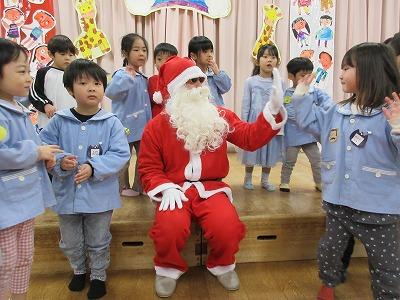 前日から「明日、サンタさん来てくれるかな〜」とワクワクしていた子ども達。サンタさんの登場に立ち上がって喜ぶ姿も見られました。