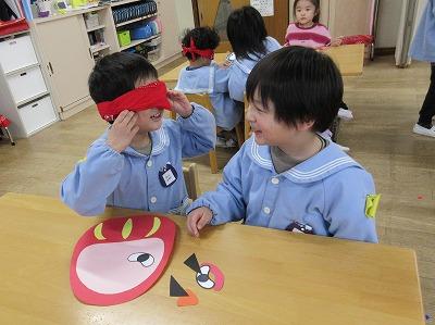 福笑いで順番に目や口をはっていき顔になっていくこともニコニコで楽しんでいました。