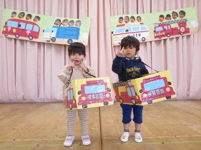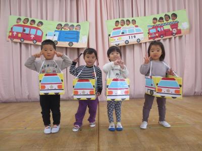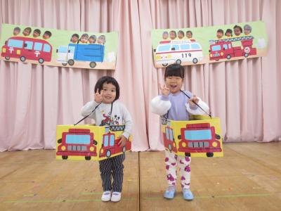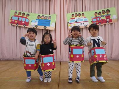 かんな組は、今“はたらくくるま”で盛り上がっています!お散歩のときに見かける様々なはたらくくるまになりきって、ひょうげん遊びを楽しんでいますよ!今週末のはっぴょうかいでは、いつもの楽しい雰囲気が伝わるといいなぁと思っています。初めての大舞台でドキドキする姿も見られるかもしれませんが、どうぞ、温かく見守ってくださいね☆