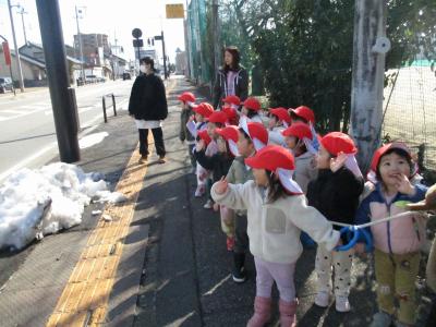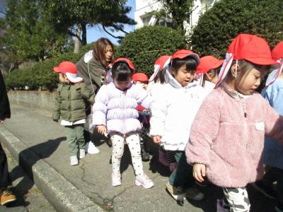 晴れた日には戸外へ出て散歩に出かけました。久しぶりに散歩へ行くと大喜びの子どもたちで、自然とみんなで大合唱になったり、発見を知らせ合ったりと楽しむ姿がたくさん見られましたよ。
