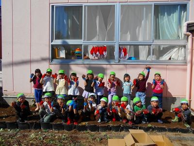 長いつるをみんなで引っ張って、両手で一生懸命に土を掘り、「あ!いもあった!」「でっかいのでた!」など喜ぶ声が沢山聞こえてきました。