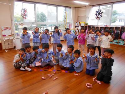 また、来月の生活はっぴょう会に向けて楽器遊び、劇遊びにも張り切っています。お家の方に観ていただくことを楽しみにしている子どもたちです。応援よろしくお願いします。
