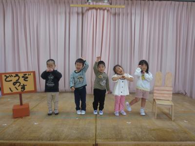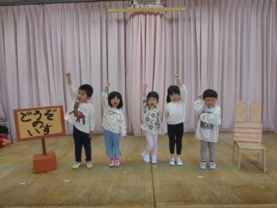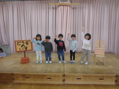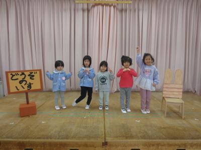 いよいよ明日は生活はっぴょうかいです。これまで「どうぞのいす」の劇あそびや、楽器あそびを楽しんで取り組んできました。子どもたちは毎日「今日、どうぞのいす、する?」と言って、張り切っていて、お家の方に見てもらうことをとても心待ちにしていました。