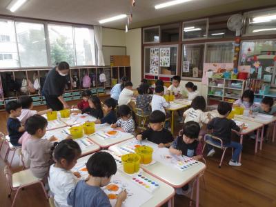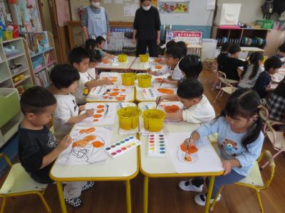 10月よりさくら組も音楽リズム教室、絵画教室が始まりました。