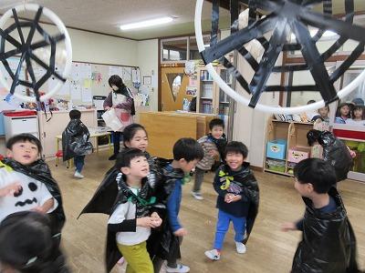 数日前に作ったキャンディを2グループに分かれて隠し合い、それを見つける宝探しをしたり、クモの巣に見立てた的あてにそれぞれ丸めて作ったモチーフを投げて、くっつく瞬間を楽しんだりして盛り上がりました!