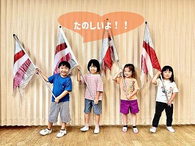 もう少しで運動会!カラーガードに玉入れ、かけっこ、どの競技もお家の人にかっこいいところを見てもらうぞー!と張り切って、楽しんで取り組んでいる子どもたちです。