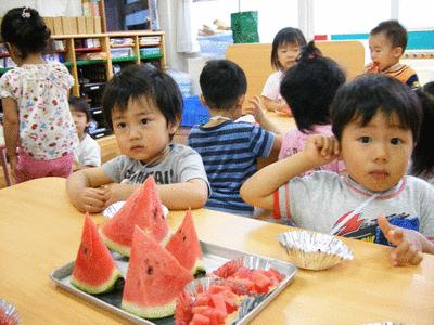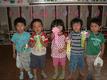生活発表会では、27名力をあわせて「おむすびころりん」の劇あそびに挑戦!!それぞれの役になりきってセリフを言ったり、音楽にあわせて踊ったりして楽しみました。生活発表会当日、大勢の人達から、たくさんの拍手をもらい、うれしそうでした。自信に満ちた子ども達の表情をみていると、またひとまわり大きく成長したなと感じました。