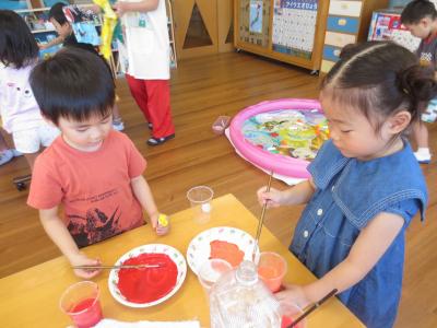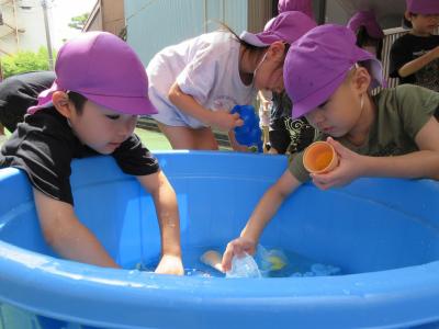 最近ではドッチボールをゆり組さんと楽しんでいます。まだ逃げることだけに一生懸命ですが、繰り返し楽しみながら攻撃手になったり、勝負することの面白さも伝えていきたいと思います。