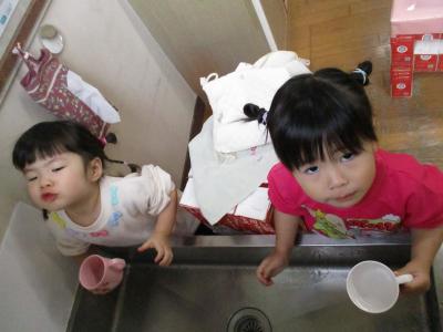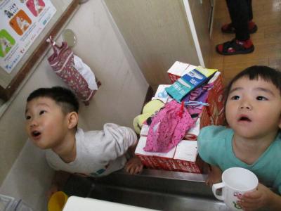 初めてのうがいでブクブクうがいやガラガラうがいを上手にする姿が見られました。また、できなかった子でも毎日の繰り返しのなかで少しずつできるようになってきました。難しいガラガラうがいも上を向いて口を開けてみようと頑張る姿も見られましたよ。