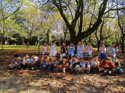 古城公園に散歩へ行った際には、どんぐりやいがぐり、くり、イチョウの葉などを拾ったり、キンモクセイの良い香りを嗅いだりと秋みつけを楽しみました。
