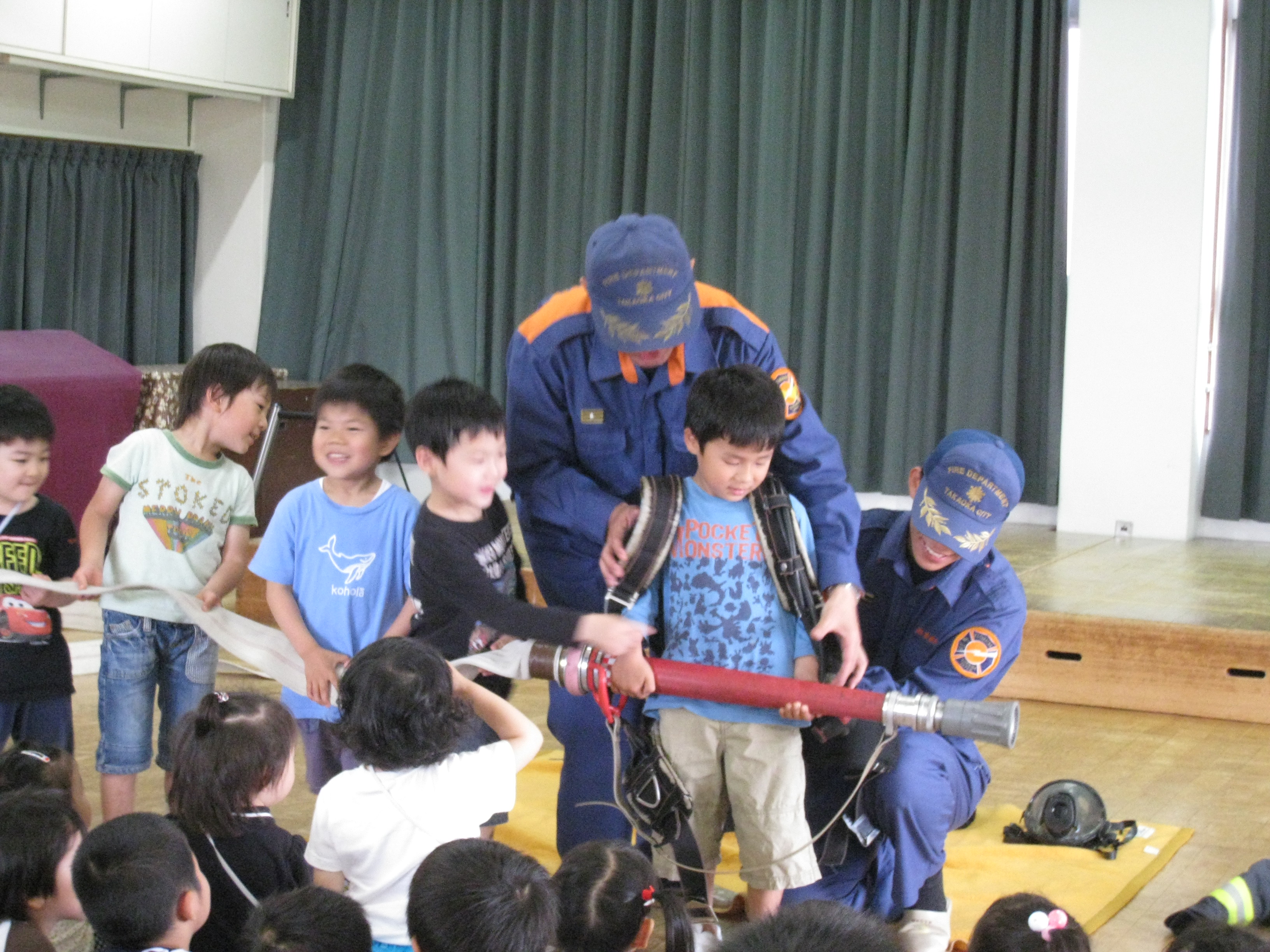 今月は消防署の方にきていただいて、避難訓練をしました。
