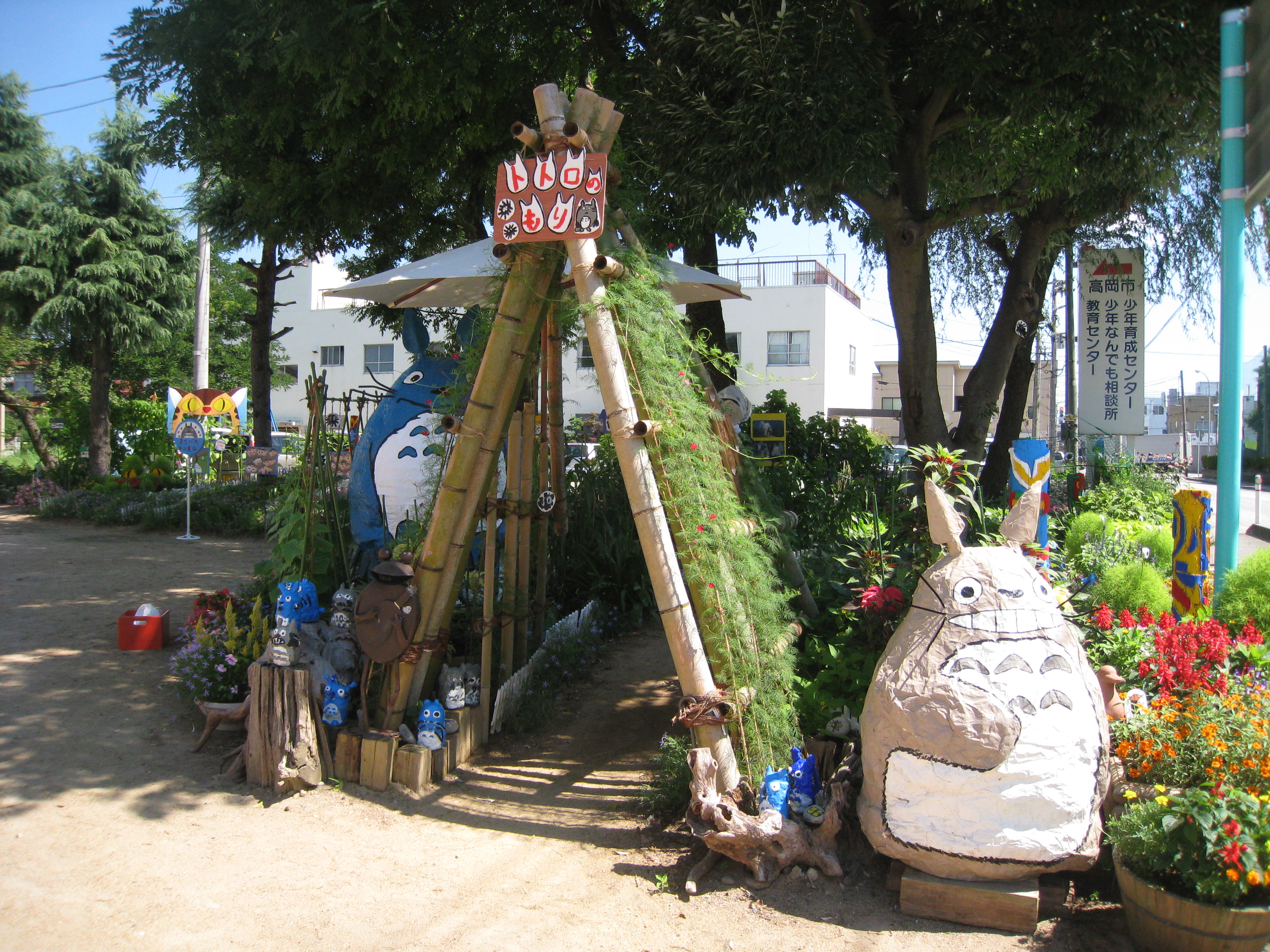 また今年は、各年齢ごとにさらにテーマをもうけて取り組みました。子ども達の作ったトトロがお花の中にかくれていたり、お花でトトロやネコバス、メイちゃんのスカート作りにも挑戦しました。